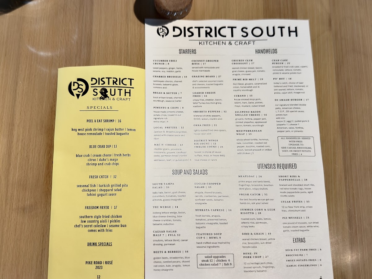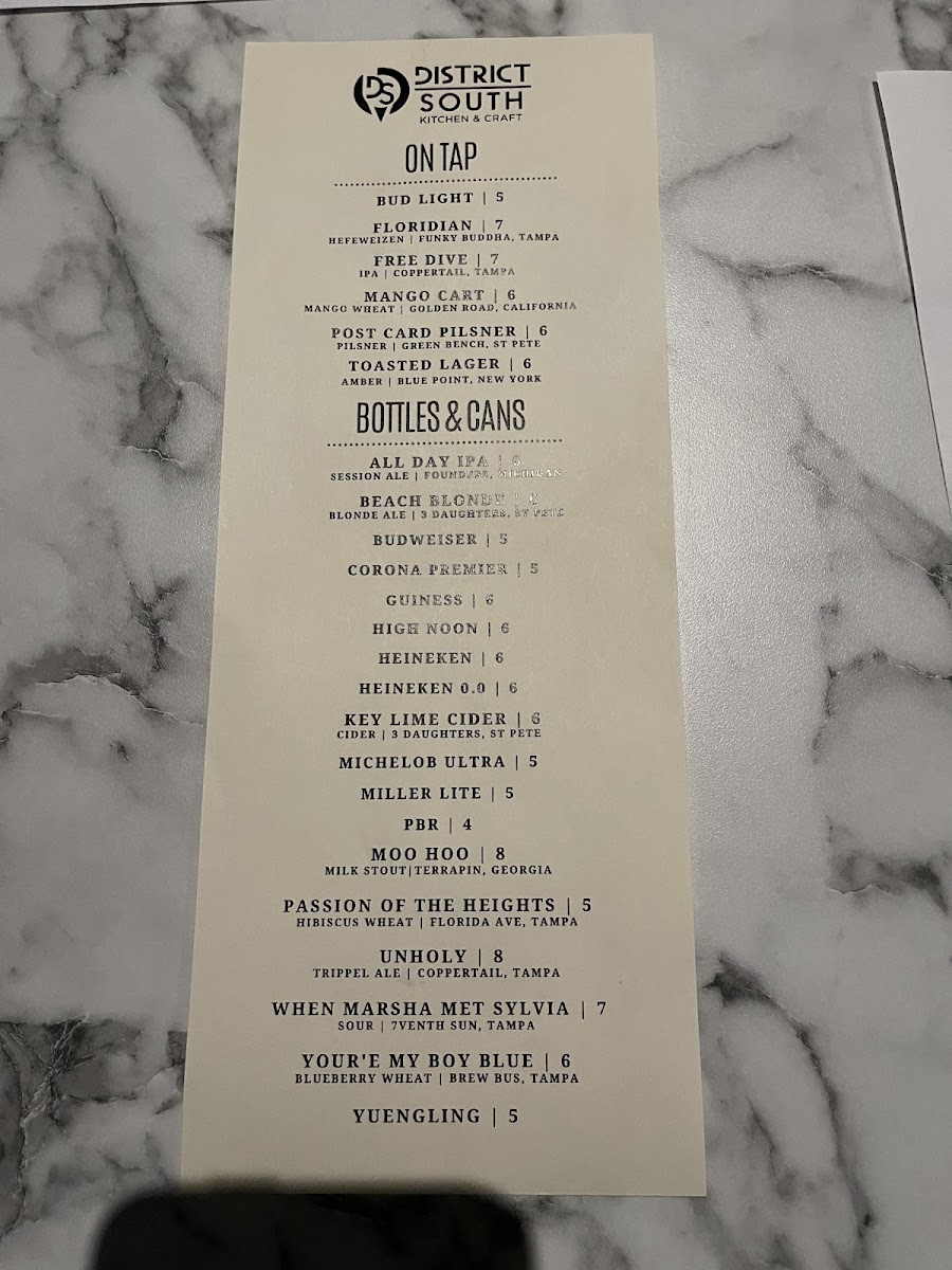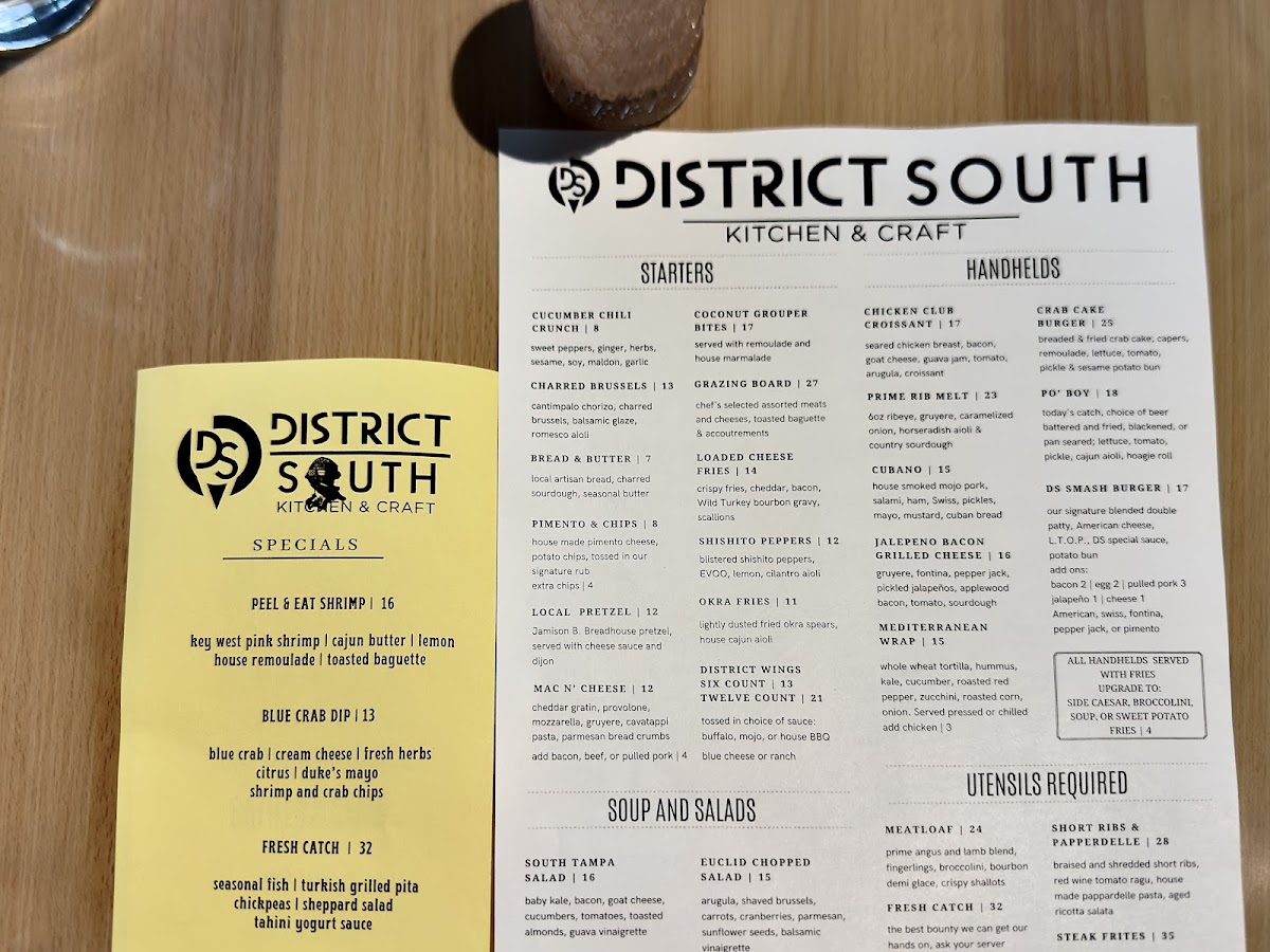 District South Kitchen & Craft Menu (Update 2025)