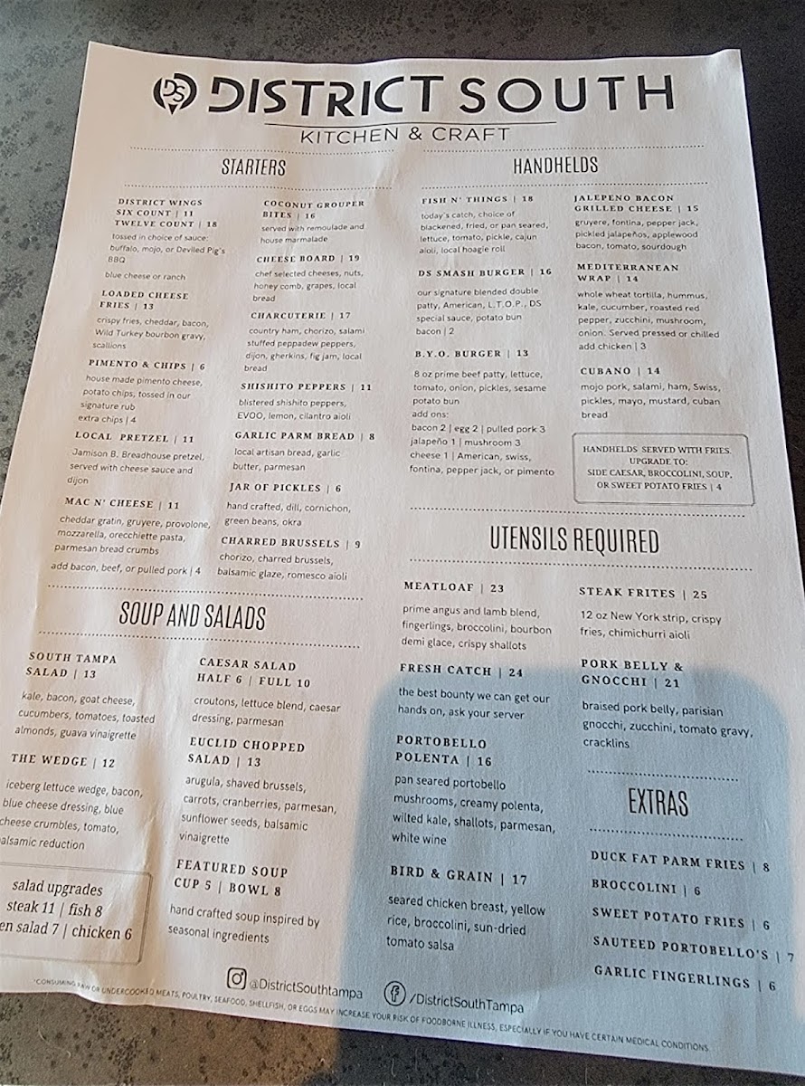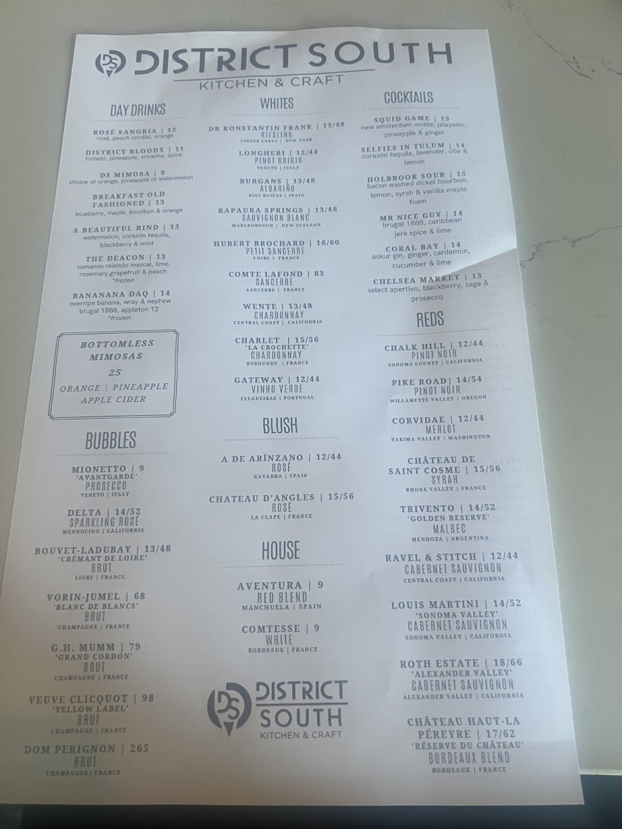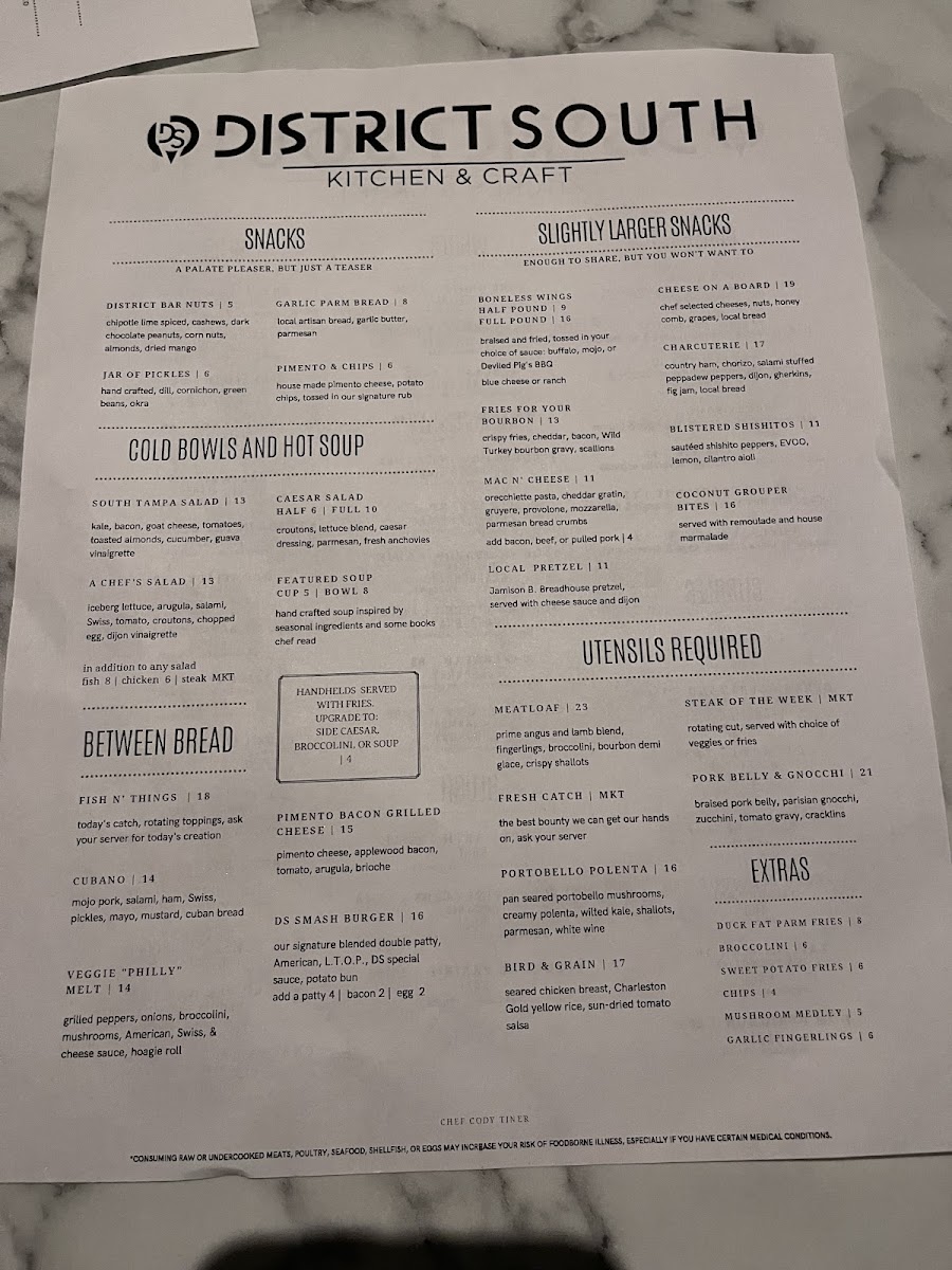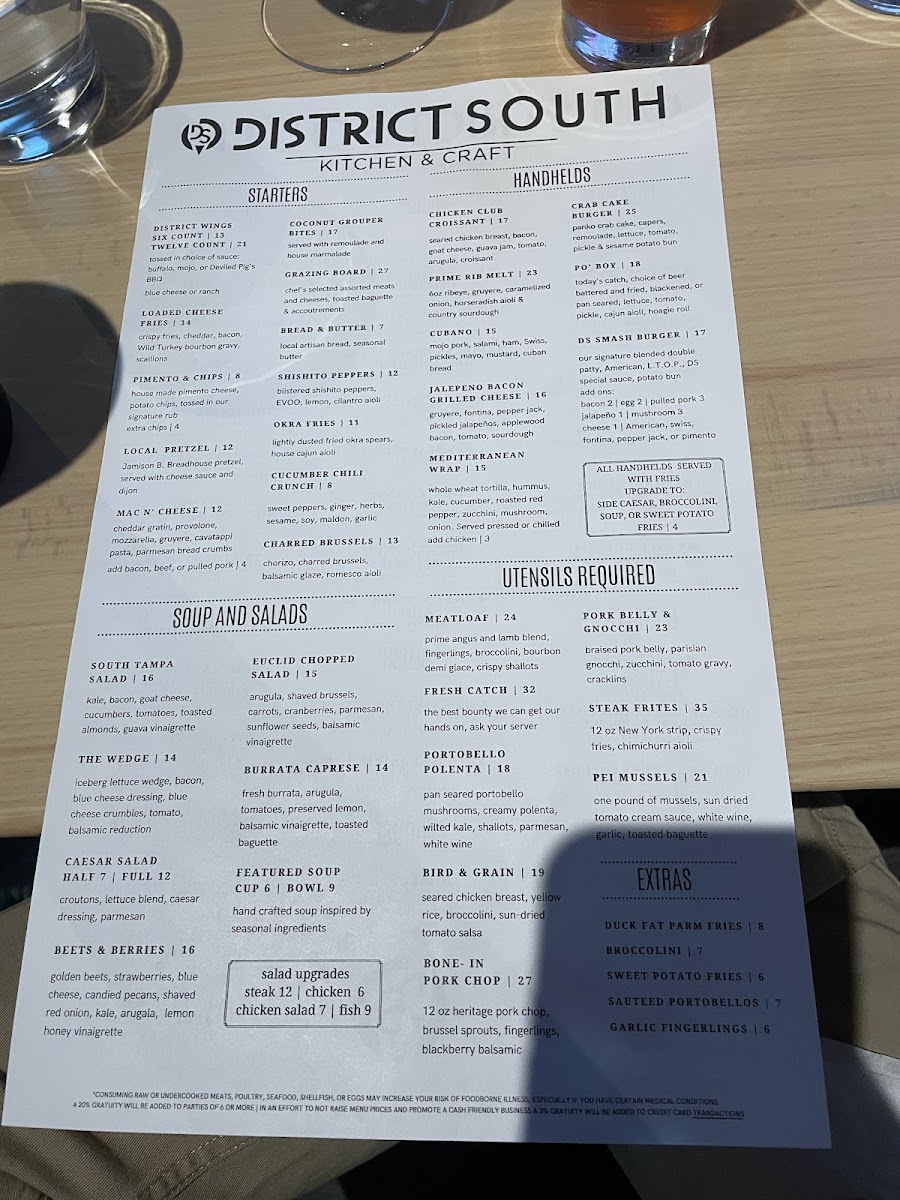 District South Kitchen & Craft Menu (Update 2025)